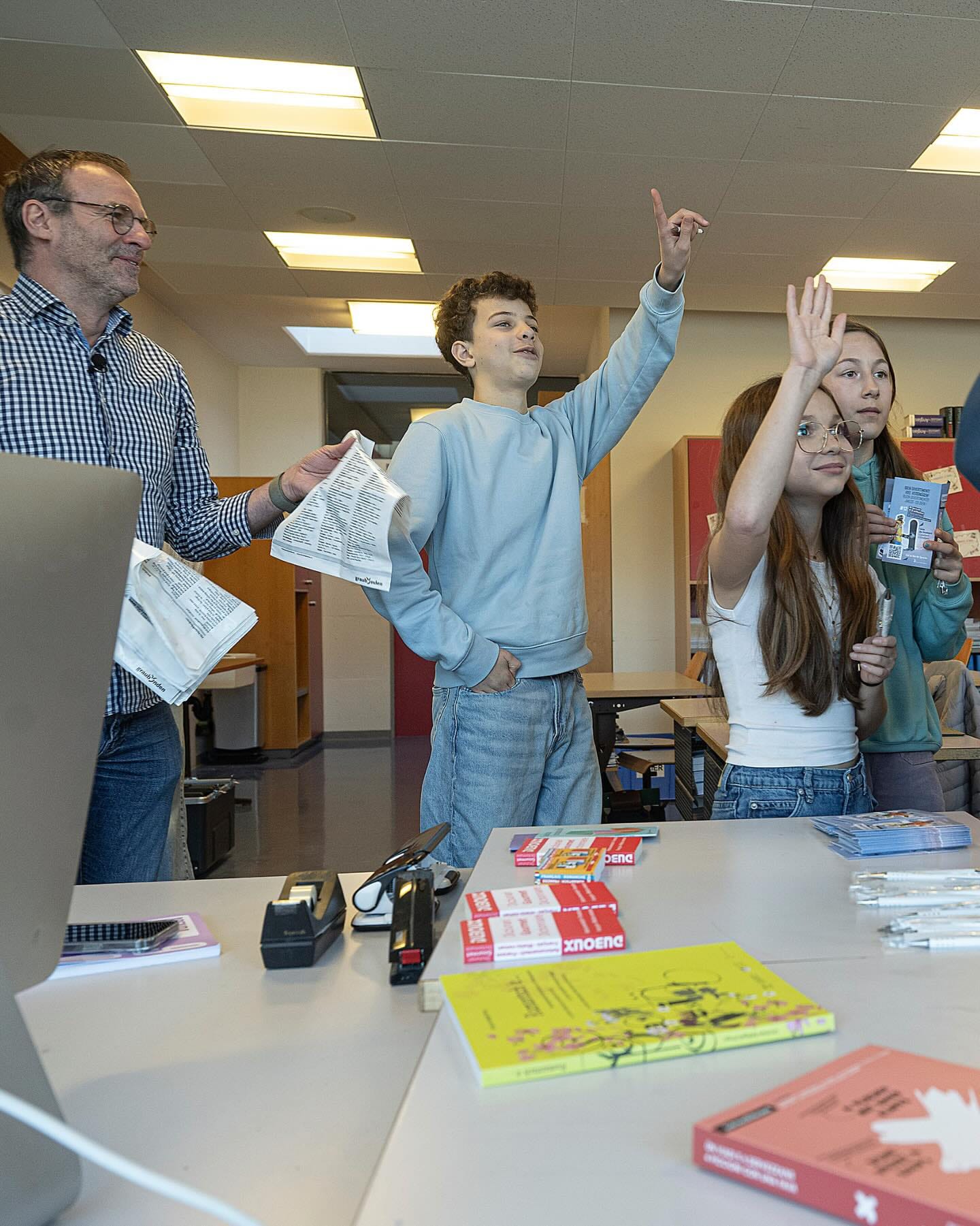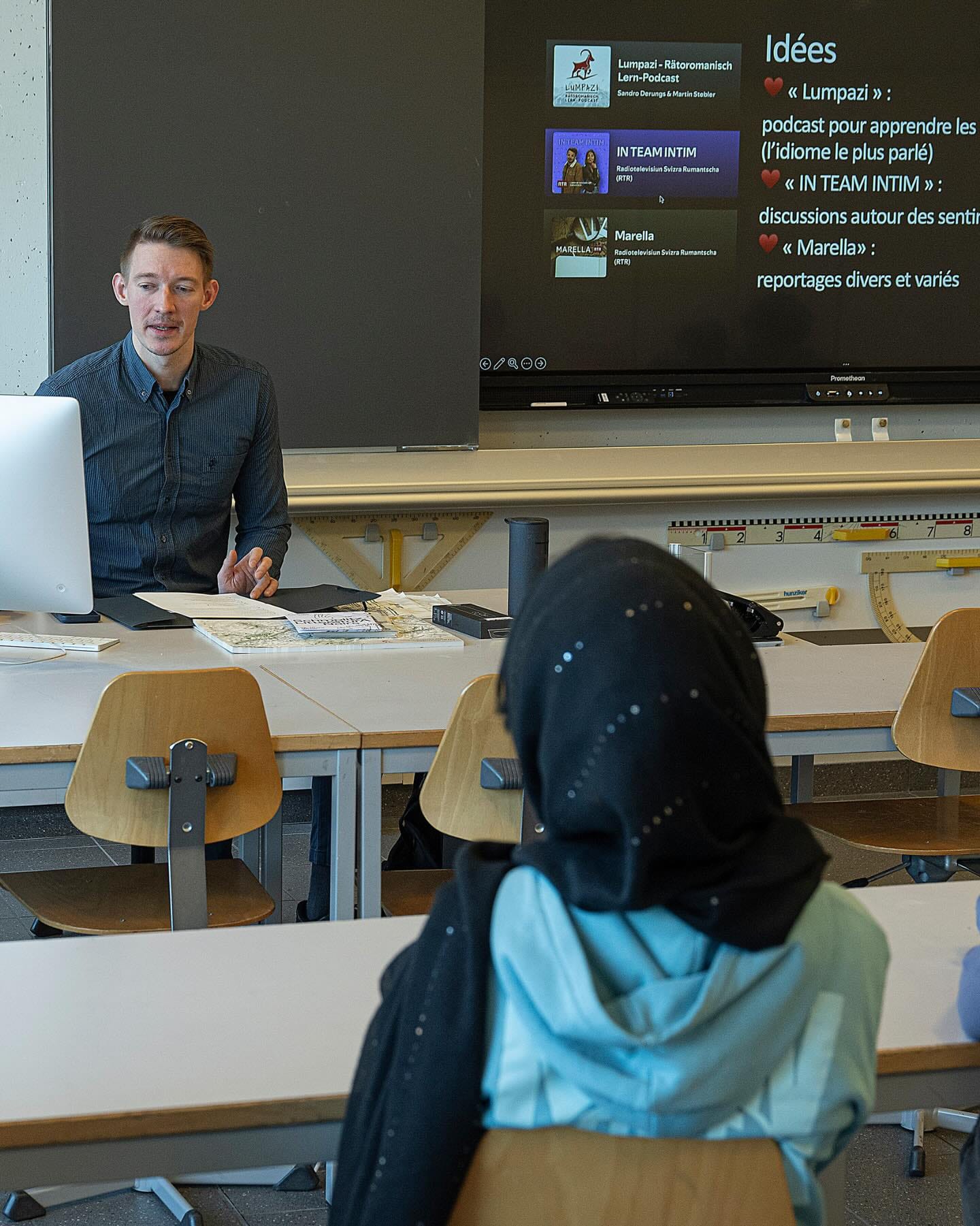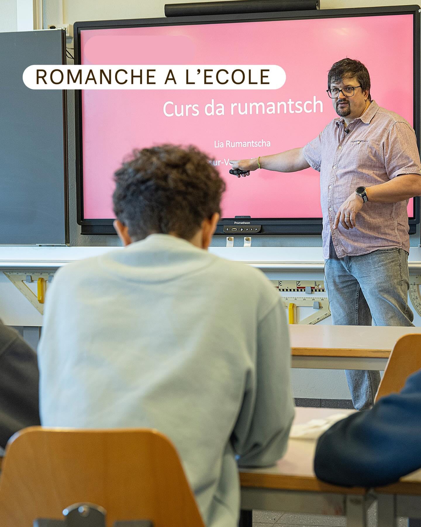 La journée a débuté avec un cours de romanche destiné aux élèves de 9e année. Sur l'écran devant la classe: "Rumantsch dans ta poche".
