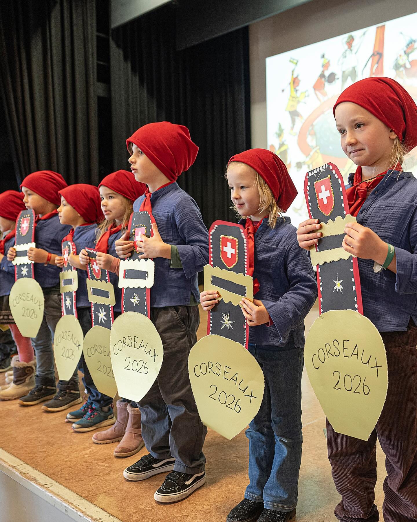 Les plus jeunes ont ensuite fêté la Chalandamarz, une fête célébrée le 1er mars dans les régions romanches, qui vise à repousser l'hiver au moyen de cloches pour faire revenir le printemps. Des élèves de 1-2P ont ainsi défilé aux couleurs du costume traditionnel.