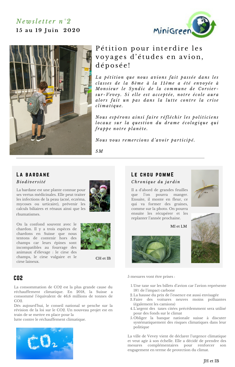 Une pétition pour interdire les voyages d’études en avions, des infos sur la bardane, une chronique sur le chou pomme, et un nouveau project pour la lutte contre le rechaufement climatique.